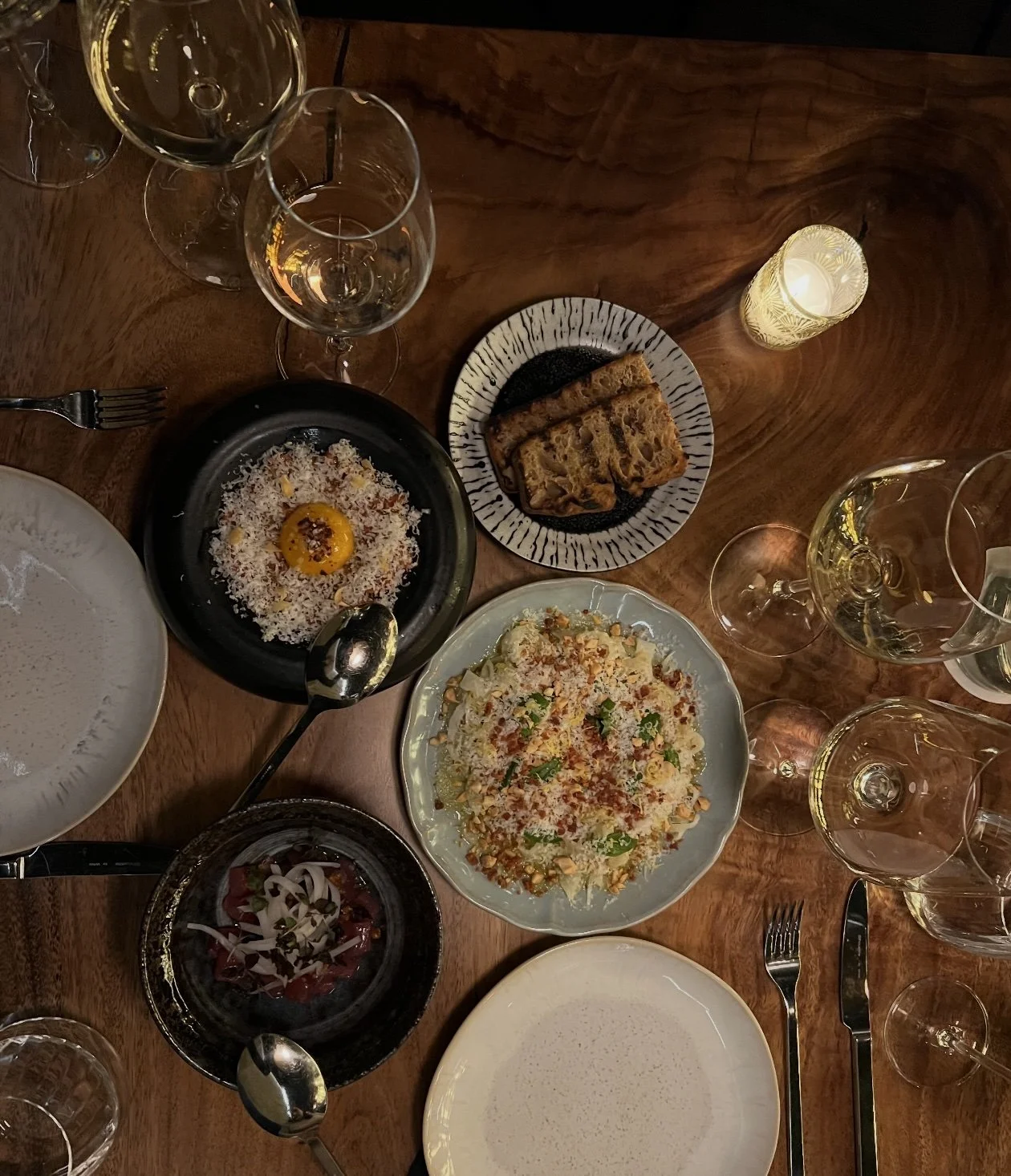 More assertive was the grass-fed bison tartare, a deep, mineral preparation punctuated by Calabrian chili. Finished with egg yolk and grated cheese, it hit that perfect tartare balance: creamy, spicy, and savory all at once.